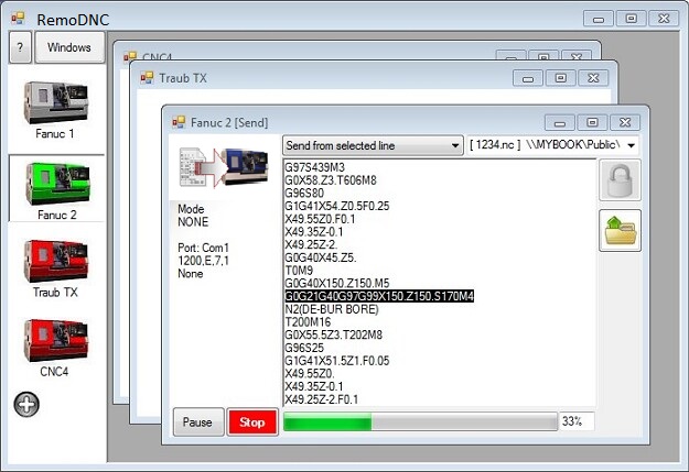 Introduction This version of EasyDNC is a Windows "MDI" type application. (Multi-Document Interface) where the main program window (seen below) is a container for one or more separate DNC task windows. MDI technology allows EasyDNC Remo to multi-task to manage, send and receive data to more than one CNC at the same time. The Remo DNC Management 'container' window.