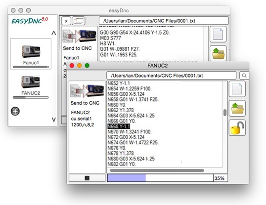 DNC tasks can be popped out of the main program window and placed anywhere on the display.
